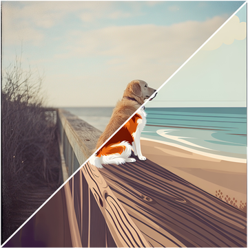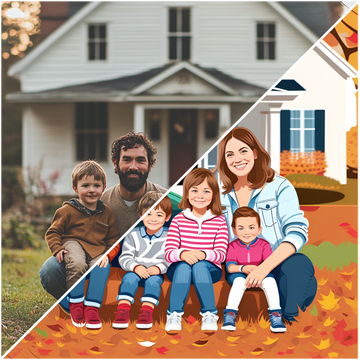 We pair your cherished photo with a custom-drawn caricature—resulting in a unique, tilt-and-change image. Tilt the print one way to see the original photo, and another way to reveal the whimsical caricature.